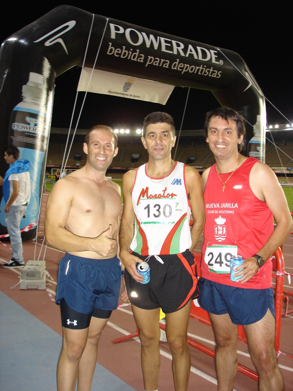 EL PASADO SABADO 1 DE OCTUBRE A LAS 8 DE LA TARDE, SE DIO EN EL ESTADIO CHAPIN DE JEREZ DE LA FRONTERA LA XXV MILLA NOCTURNA CIUDAD DE JEREZ, Y ALLI NOS DIMOS CITA DOS COMPONENTES DEL NUEVA JARILLA C.A., NACHO Y JUANPEX.
