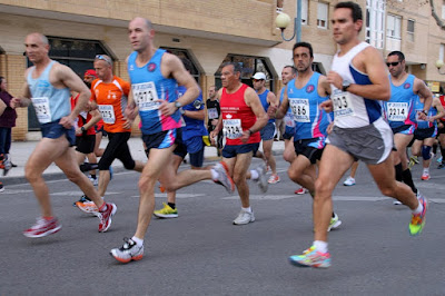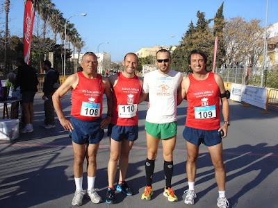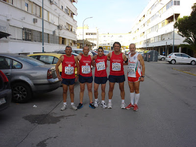 ASI QUE TRAS HACER NUESTROS CALENTAMIENTOS ANTES DE LA PRUEBA, NOS PUSIMOS EN LA SALIDA PARA COMENZAR LA PRUEBA, Y, TRAS EL PISTOLETAZO INICIAL, SE DIO LA SALIDA A ESTA GENIAL CARRERA, CON MANUEL BENITEZ COMANDANDO LA CARRERA EN TODO MOMENTO Y GANANDOLA CON VENTAJA. SANTI HIZO UN GENIAL COMIENZO DE CARRERA, CON EL GRUPO DE CABEZA EN EL PRIMER KILOMETRO, QUE YA ES MUCHO, Y FUE MANTENIENDO EL RITMO DIFICIL PUES LAS CUESTAS ERAN LO MAS COMPLICADO DE LA PRUEBA, SANTI CORRIO A UN GENIAL RITMO DE 3:55 MIN/KM, GENIAL TIEMPO PARA ESTE TIPO DE CARRERAS Y PARA EL JOVENCISIMO SANTI, TERMINANDO SEXTO O SEPTIMO, NACHO, TAMBIEN FUE OTRAS DE LAS ALEGRIAS, PUES ACABO CON UN 4:03 MIN/KM PERO CON GENIALES SENSACIONES Y MUY CONTENTO DEBIDO A LA DIFICULTAD DE LA PRUEBA. JUANPEX TAMBIEN TERMINO MUY CONTENTO PUES, COMO SABEMOS, LAS PRUEBAS CON CUESTAS SE LE ATRAGANTAN Y ESTA LA TERMINO MUY BIEN, AUNQUE SUFRIO EN LA TERCERA VUELTA EN LAS ULTIMAS CUESTAS, AUN ASI, GENIAL.