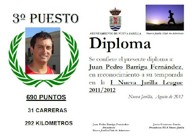 SANTI AL SER EL UNICO QUE CORRIO HA SIDO EL UNICO QUE HA PUNTUADO, Y VAYA SI HA PUNTUADO, PUES AL SER PRIMERO DE SU CATEGORIA SE APUNTA 25 PUNTOS EXTRAS. EL RESTO AUN NO HEMOS ESTRENADO EL CASILLERO.