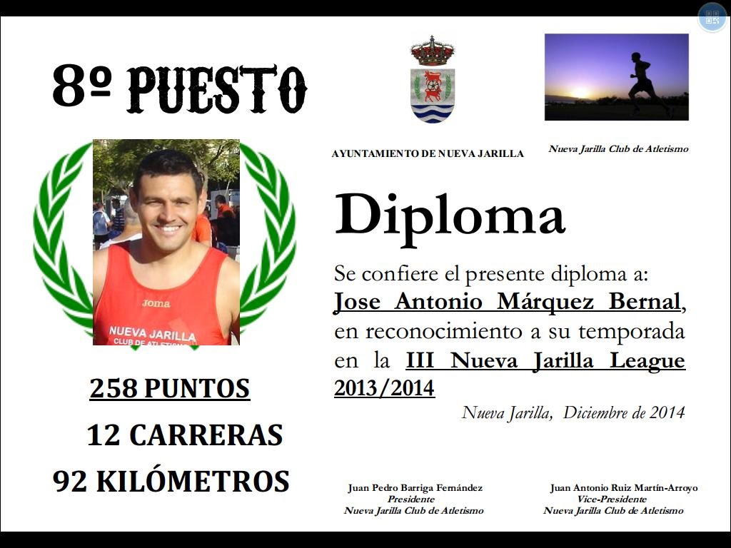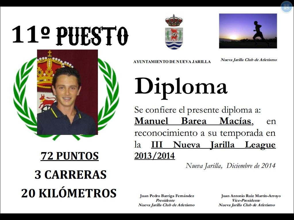 Y REUNIDOS EN LA CASA DE LOS PADRES DE NUESTRO ATLETA "NENE" Y QUE LE AGRADECEMOS A EL Y A SU FAMILIA TAL DETALLE, TAMBIEN ACOMPAÑADOS DEL ALCALDE DE NUEVA JARILLA D.JAVIER CONTRERAS, TUVIMOS NUESTRA COMIDA DE NAVIDAD, DONDE TRAS ESTA, DIMOS PASO A UNA ENTREGA DE DIPLOMAS, DONDE UNA VEZ MAS Y POR SEGUNDO AÑO CONSECUTIVO, ANTONIO SOJO CANOVAS SE LLEVA NUESTRA LIGUILLA CON TODO MERECIMIENTO Y NOS SENTIMOS MUY ORGULLOSOS DE QUE NUESTRO ATLETA NOS REPRESENTE A CADA RINCONCITO QUE VA.