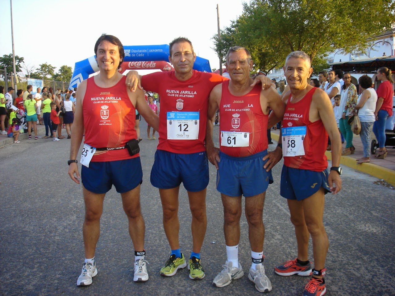 TRAS CALENTAR, ESTUVIMOS DIEGO, ANTONIO, JUAN RUIZ Y YO, PUES NACHO ESTABA UN POCO PERDIDO Y YA NOS CONTARA DONDE SE METIO PUES AUNQUE ESTABA INSCRITO CEDIO EL DORSAL POR LO QUE CORRIO SIN DORSAL, AUN ES UN MISTERIO EL PORQUE HIZO ESO, HABRA QUE INFORMARSE.