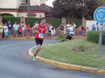 PUES BIEN, LA PRUEBA, COMO SIEMPRE, 2 VUELTAS AL MISMO CIRCUITO URBANO DE SIEMPRE, EN TOTAL 8.000 METROS, CON LA DIFERENCIA DE QUE LOS 100-150 METROS FINALES NOS METIERON EN EL SITIO DONDE ESTABAN PUESTAS LAS ATRACCIONES DE LA VERBENA, LA VERDAD QUE FUE PRECIOSA LA LLEGADA CON GENTE A AMBOS LADOS, AUNQUE UN POCO PELIGROSO EL TERRENO POR LO MAL QUE ESTABA EN ESTOS METROS.