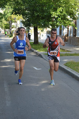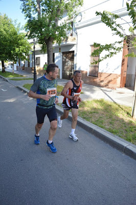 LUCAS AFRONTANDO EL QUINTO KM, AL FONDO JUANPEX QUE LO TUVO EN EL PUNTO DE MIRA HASTA EL KM 5 |